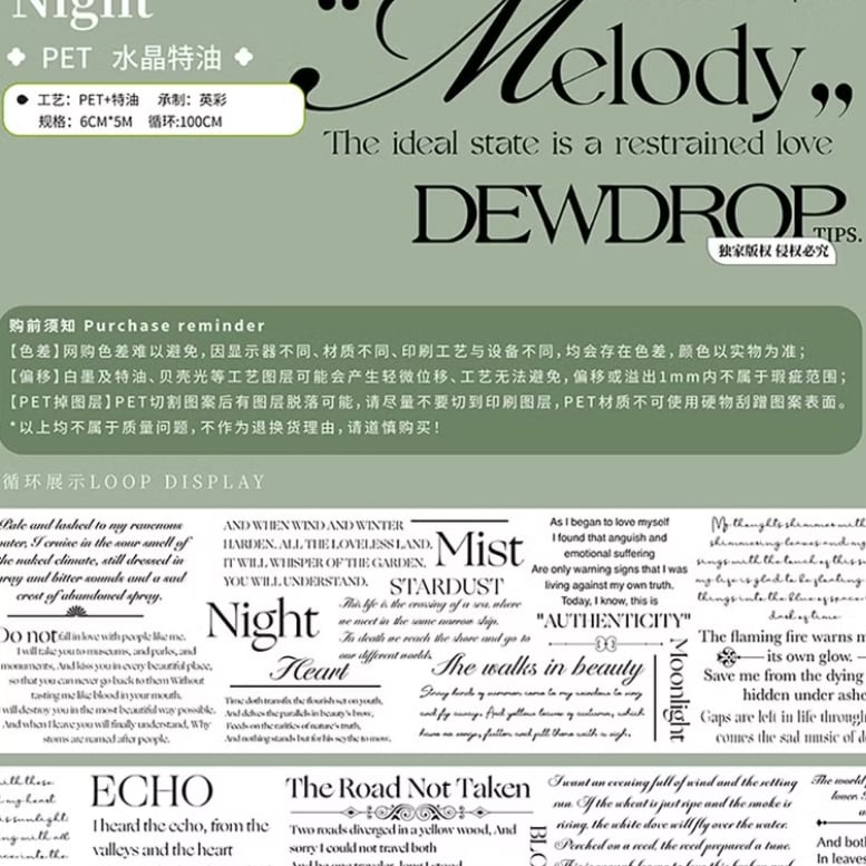 新作☆SND520|新七天【Night】水晶インク加工 PET テープ 白インク 特殊インク | cherish365_zakka