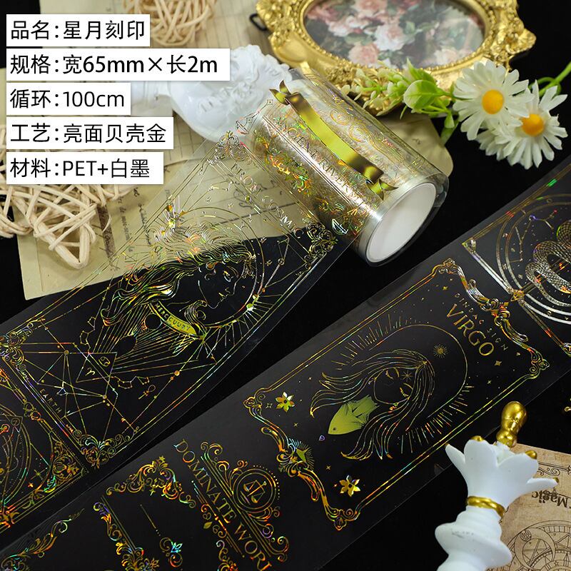 FT487|Five Treasure 五宝文創【星月刻印】貝殻金インク PETテープ 特殊インク 剥離紙付 | cherish365_zakka