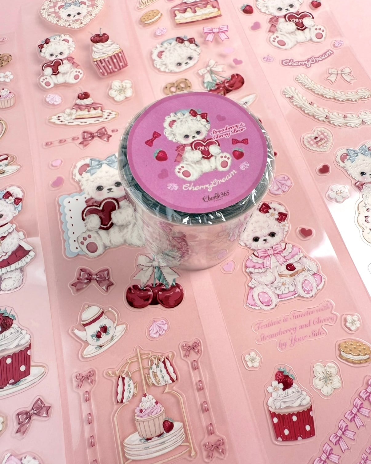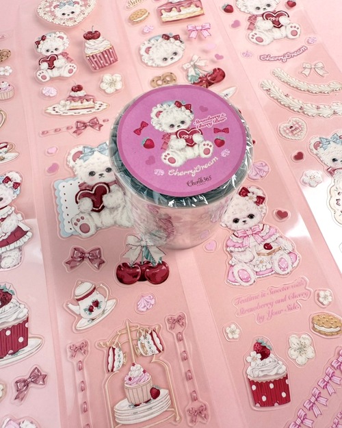新作予約☆CHO571|Cherish365【Strawberry & Cherry Bear】型抜き 水晶インク 白インク PETテープ