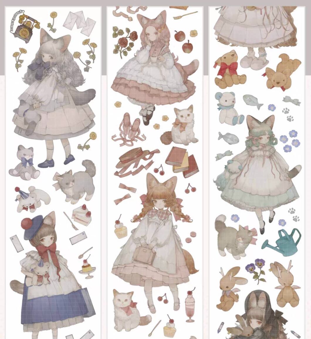 SH55B|Shine studio【猫玩偶的圆舞曲】水晶インク加工 白インク 剥離紙 PETテープ | cherish365_zakka