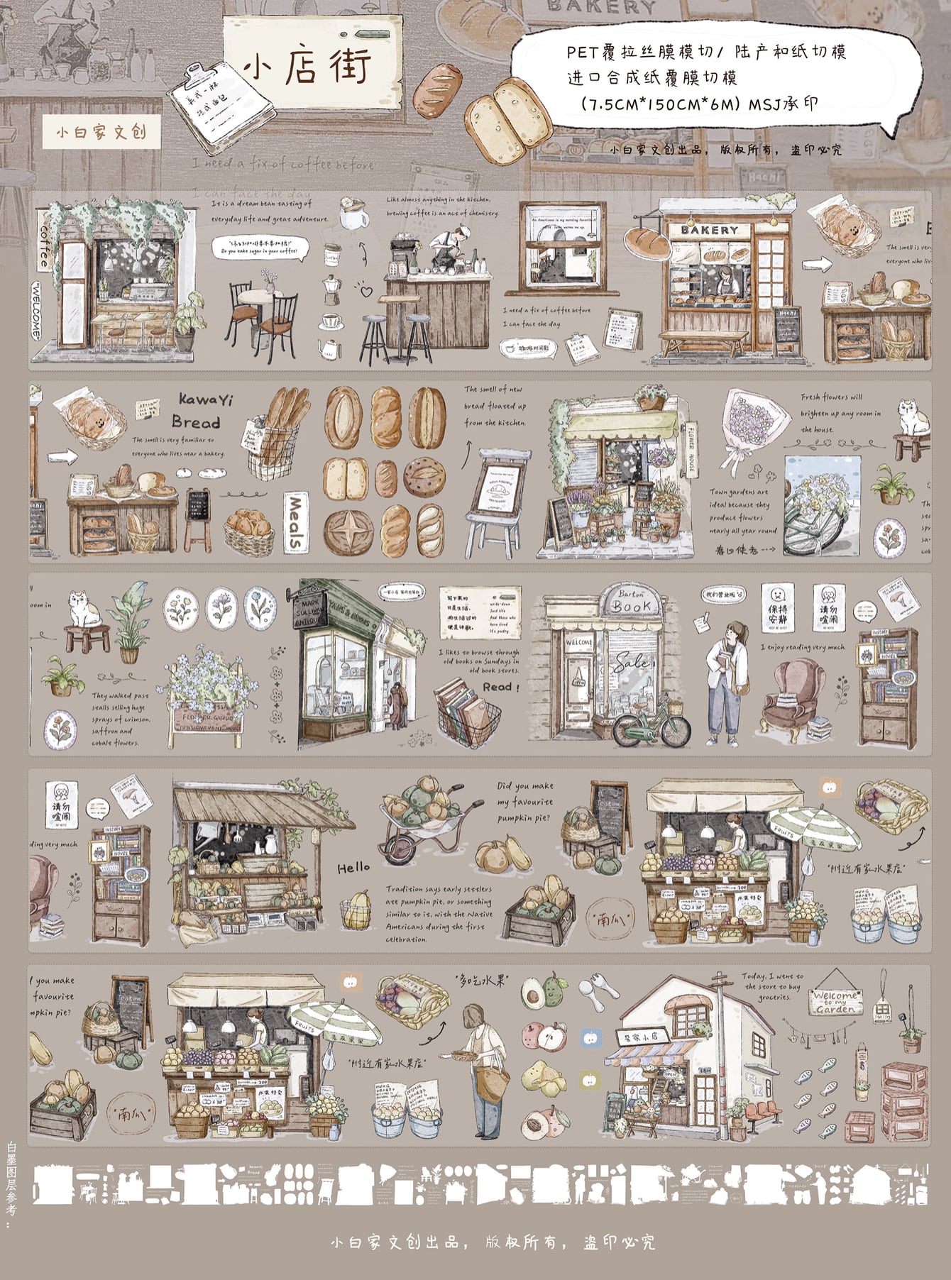 新作☆YB54|小白家【小店街】型抜き マスキングテープ / グリッターマットPETテープ | cherish365_zakka