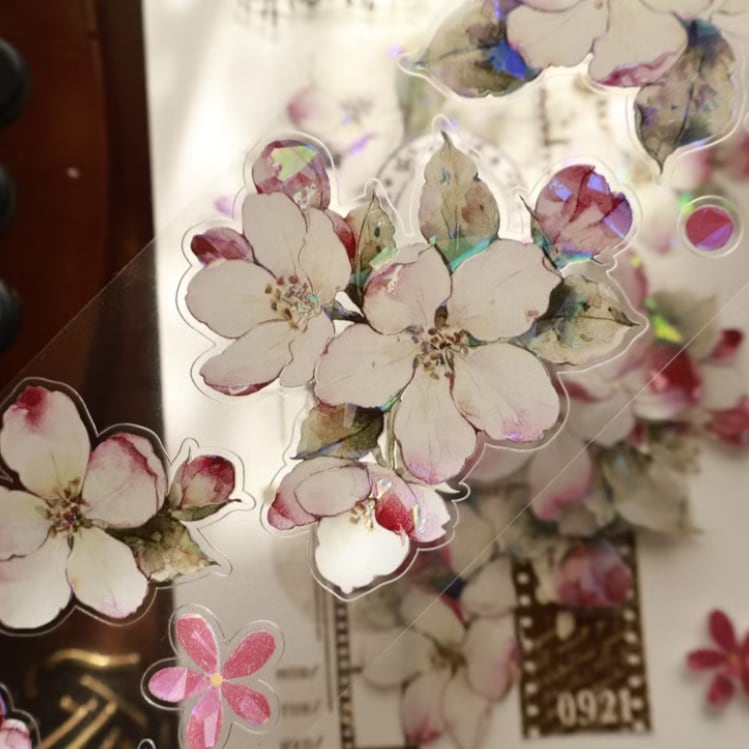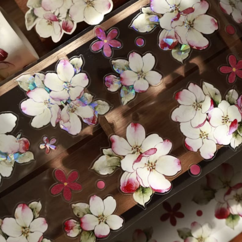 新作予約☆EM118B|yier 壹洱文創【海棠花】型抜き 貝殻光インク PET テープ