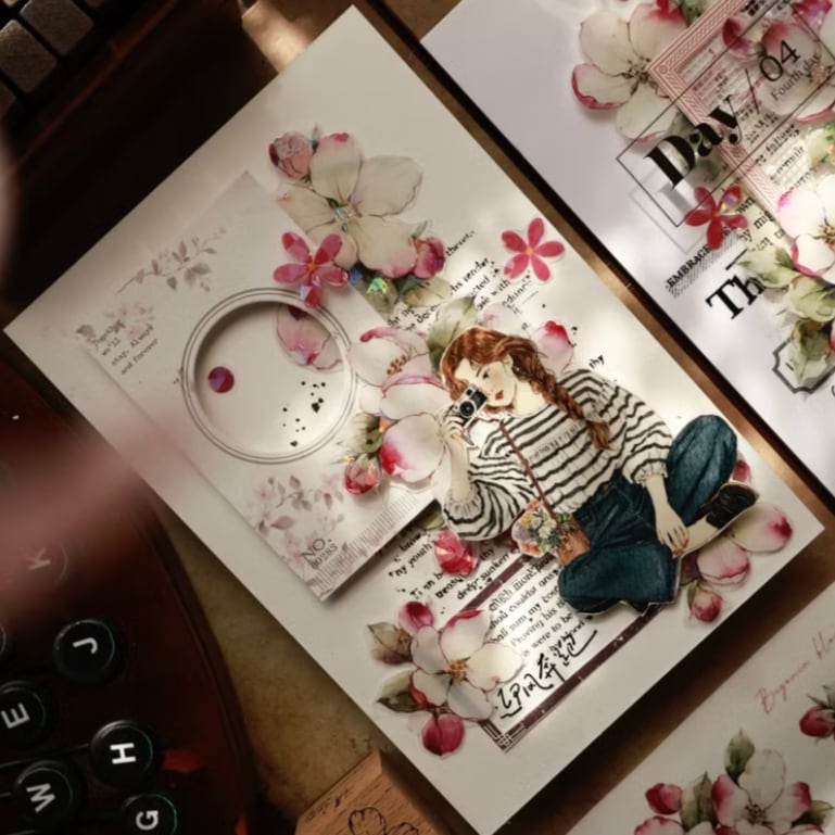 新作☆EM118B|yier 壹洱文創【海棠花】型抜き 貝殻光インク PET テープ | cherish365_zakka