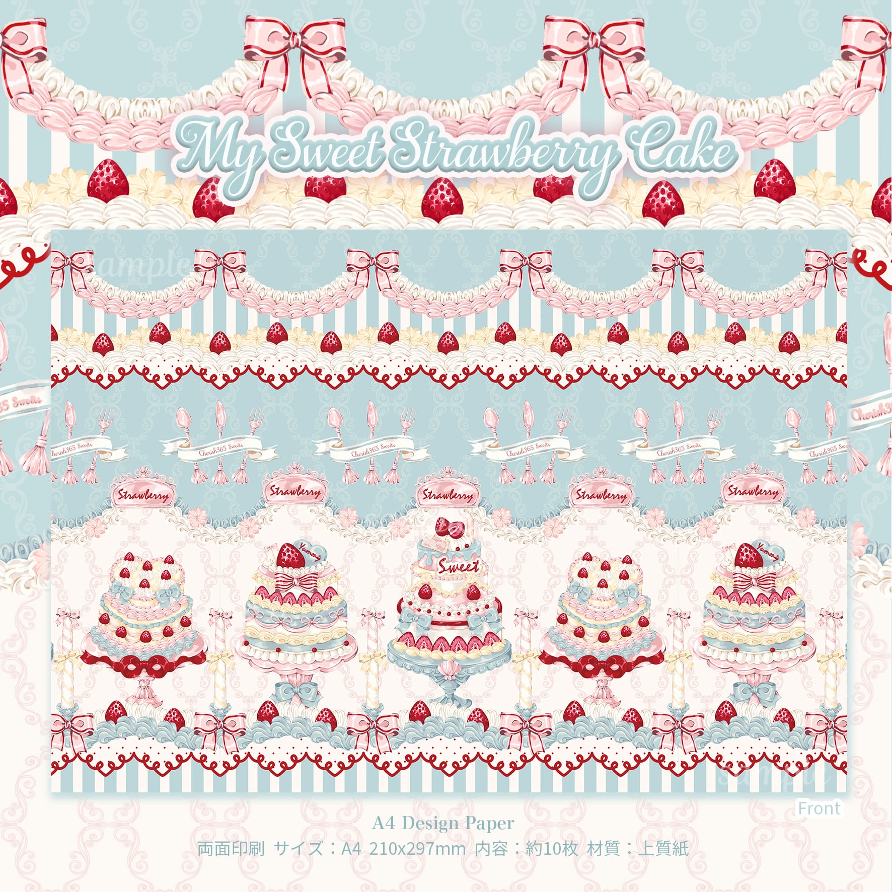 新作予約☆CHO835|Cherish365【My Sweet Strawberry Cake - Sky】A4 デザインペーパー 10枚 | cherish365_zakka