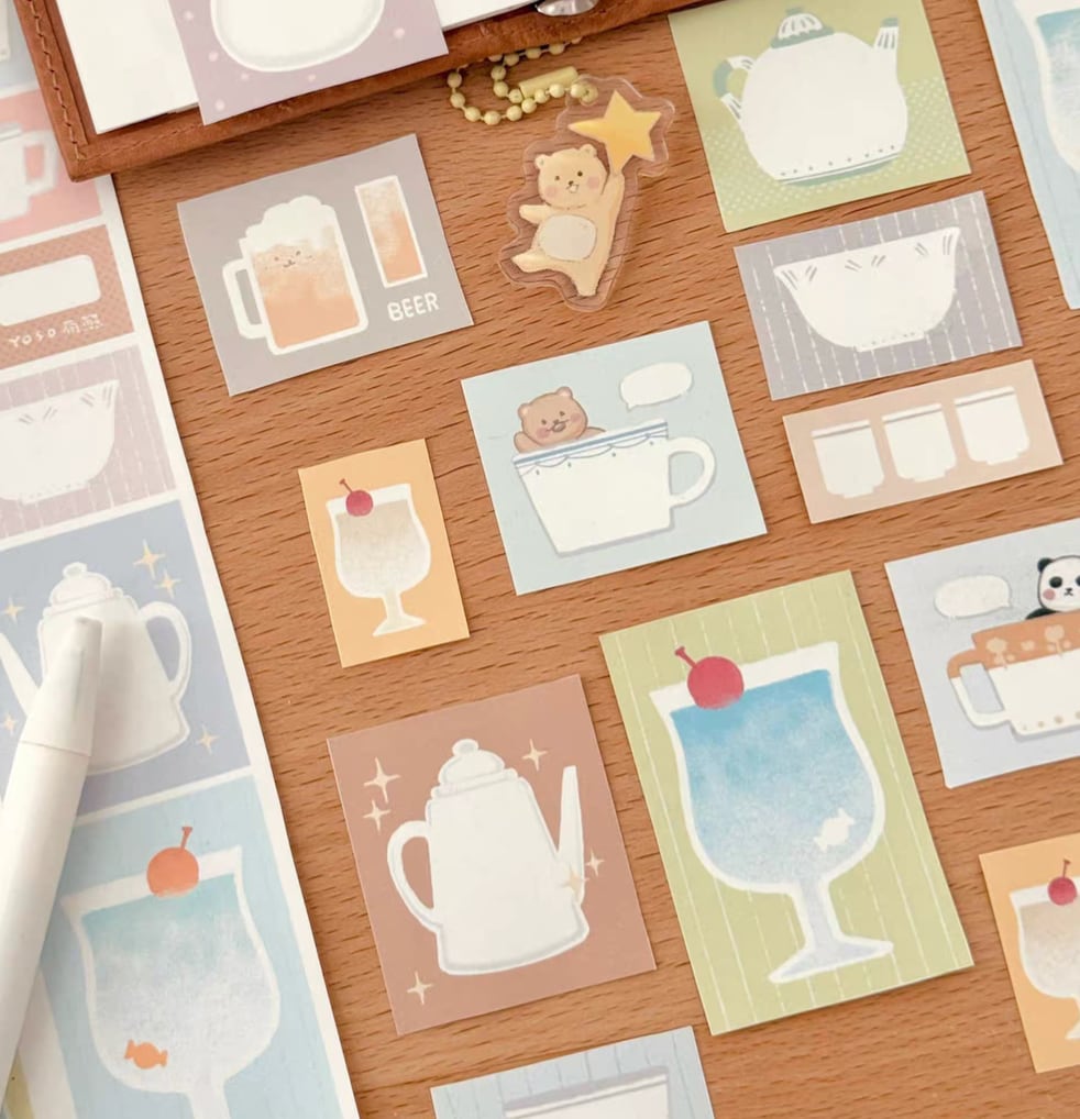 新作☆ EE202|EverEin【杯杯壶壶】型抜き 紙テープ 書けるロールシール
