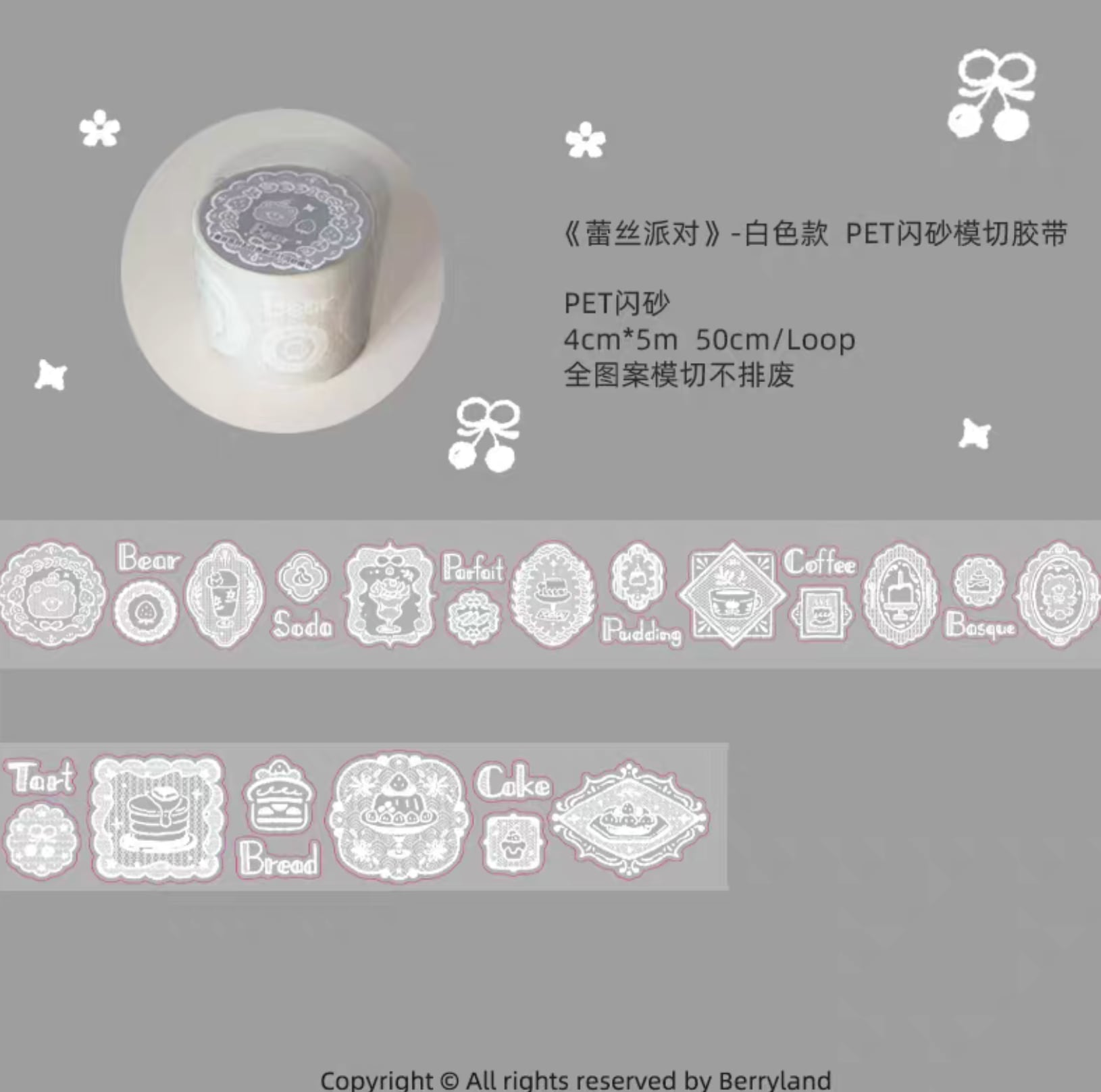 新作☆ CX53|caicaixuanxuan 菜菜瑄瑄 x Berryland【白- 蕾丝派对】グリッター PETテープ | cherish365_zakka
