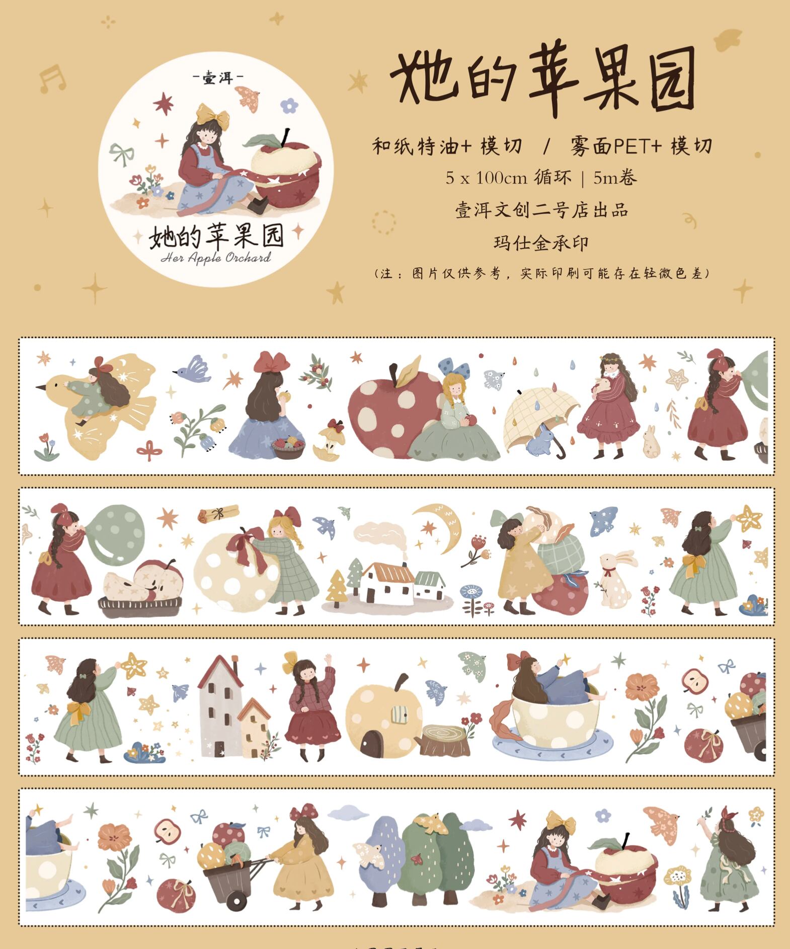 新作☆ EM127A|yier 壹洱文創2号店【她的苹果园】型抜き マスキングテープ