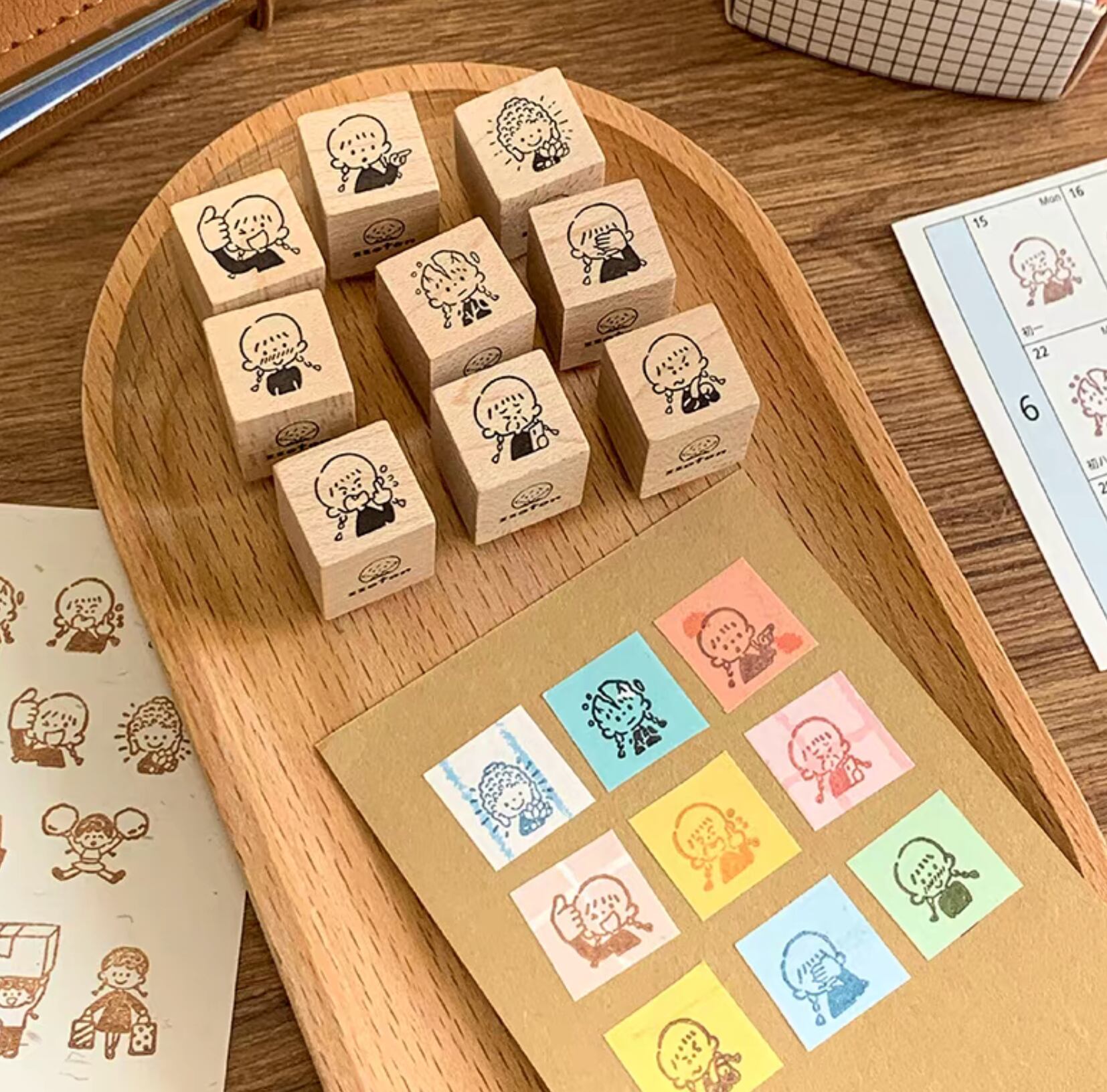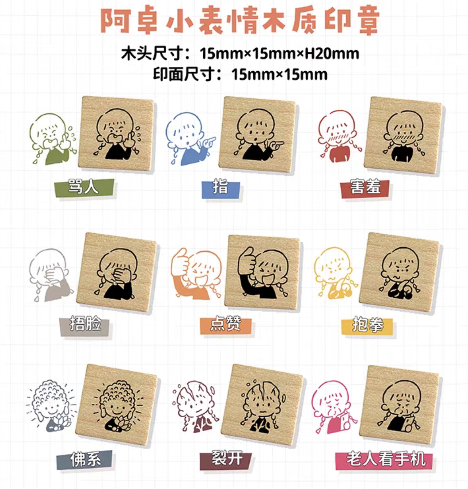 新作☆ MO785C|Molinta 【第三弾 小表情】はんこ / 木製スタンプ 全9種セット