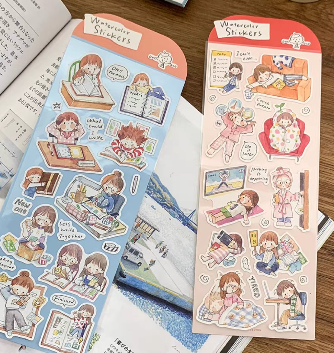新作☆ MO908|Molinta【手绘水彩日常】シートシール 2種