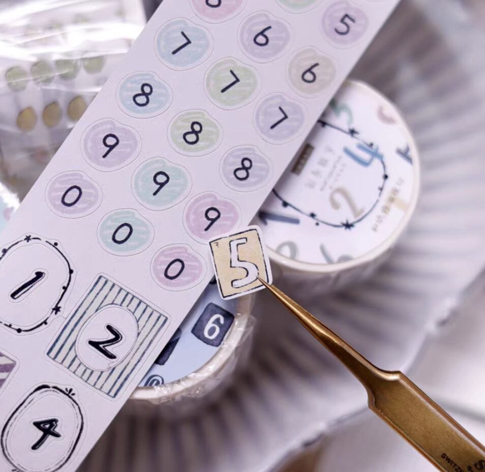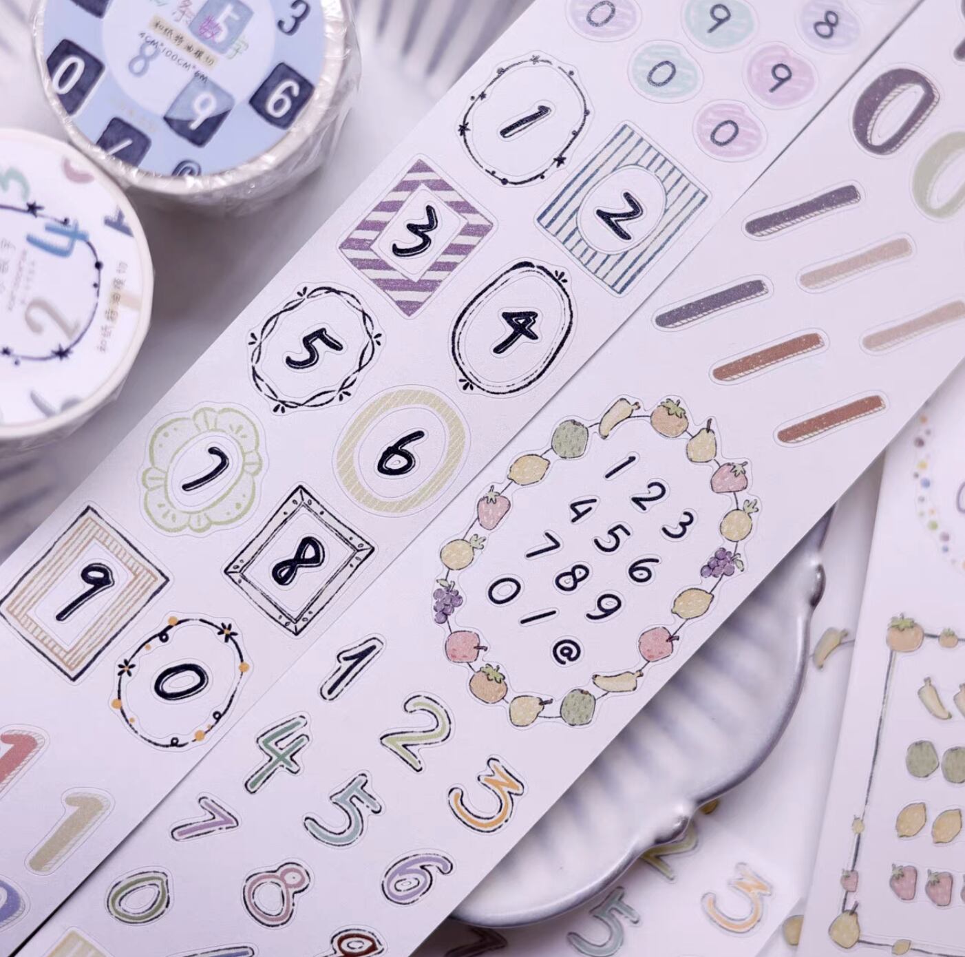 新作☆YB78A|小白家【彩条数字】型抜き マスキングテープ