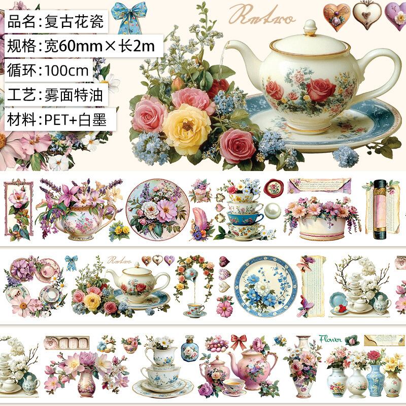 新作☆FT520|Five Treasure 五宝文創【复古花瓷】マット PETテープ 特殊インク 剥離紙付