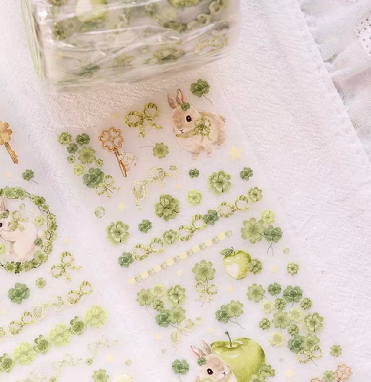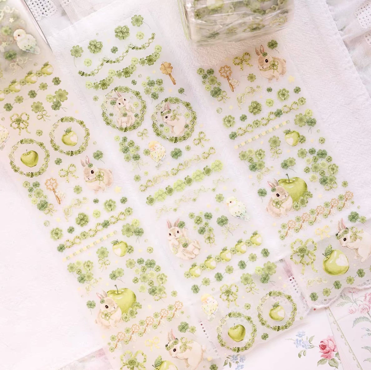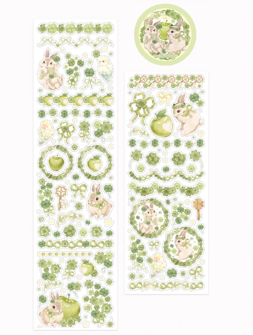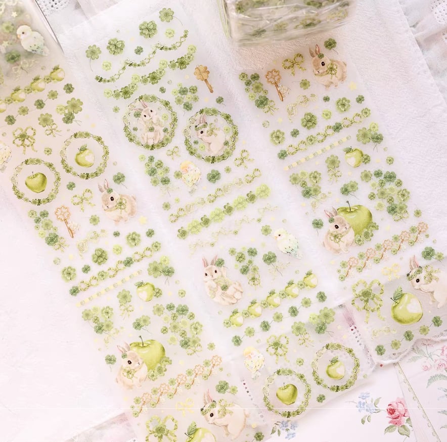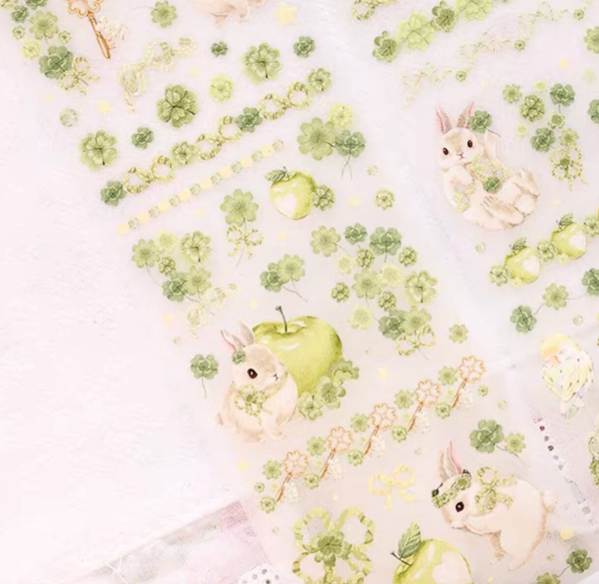 新作☆ FL832| Fairylady【绿野四叶物语】型抜き グリッター PET テープ 白インク 剥離紙付き