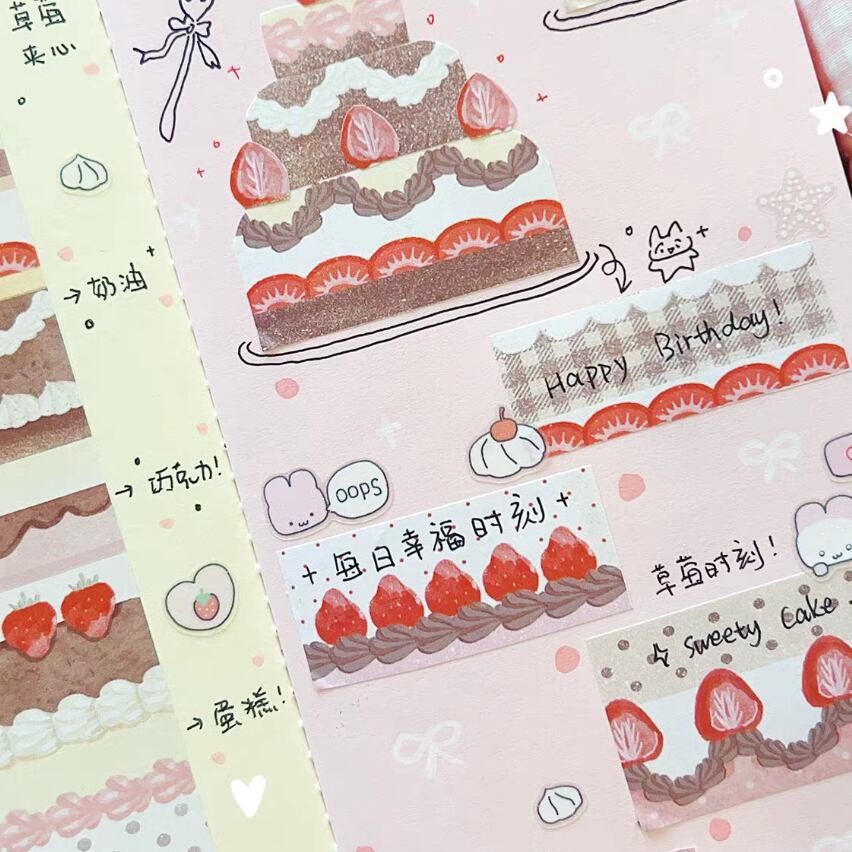 新作☆ FL842| Fairylady【草莓可可蛋糕】書けるロールテープ 剥離紙付き