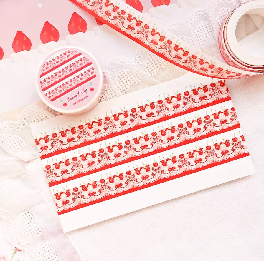 新作☆ FL847| Fairylady【樱桃奶油蛋糕】マスキングテープ 特殊インク 剥離紙付き