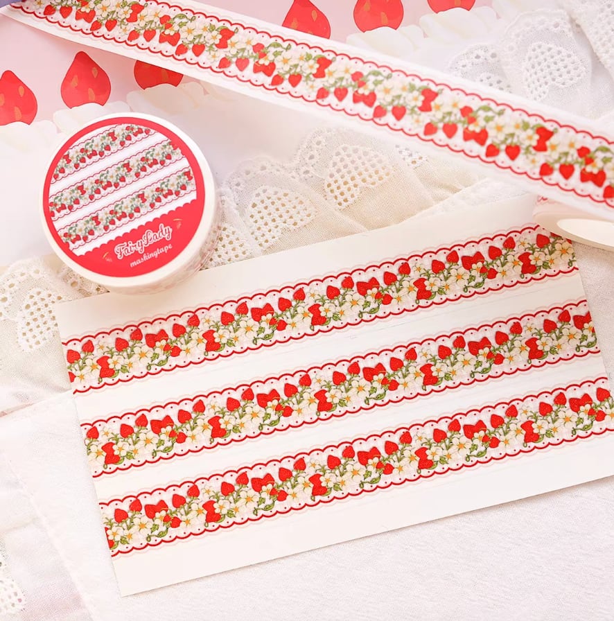 新作☆ FL848| Fairylady【野莓藤织带】マスキングテープ 特殊インク 剥離紙付き