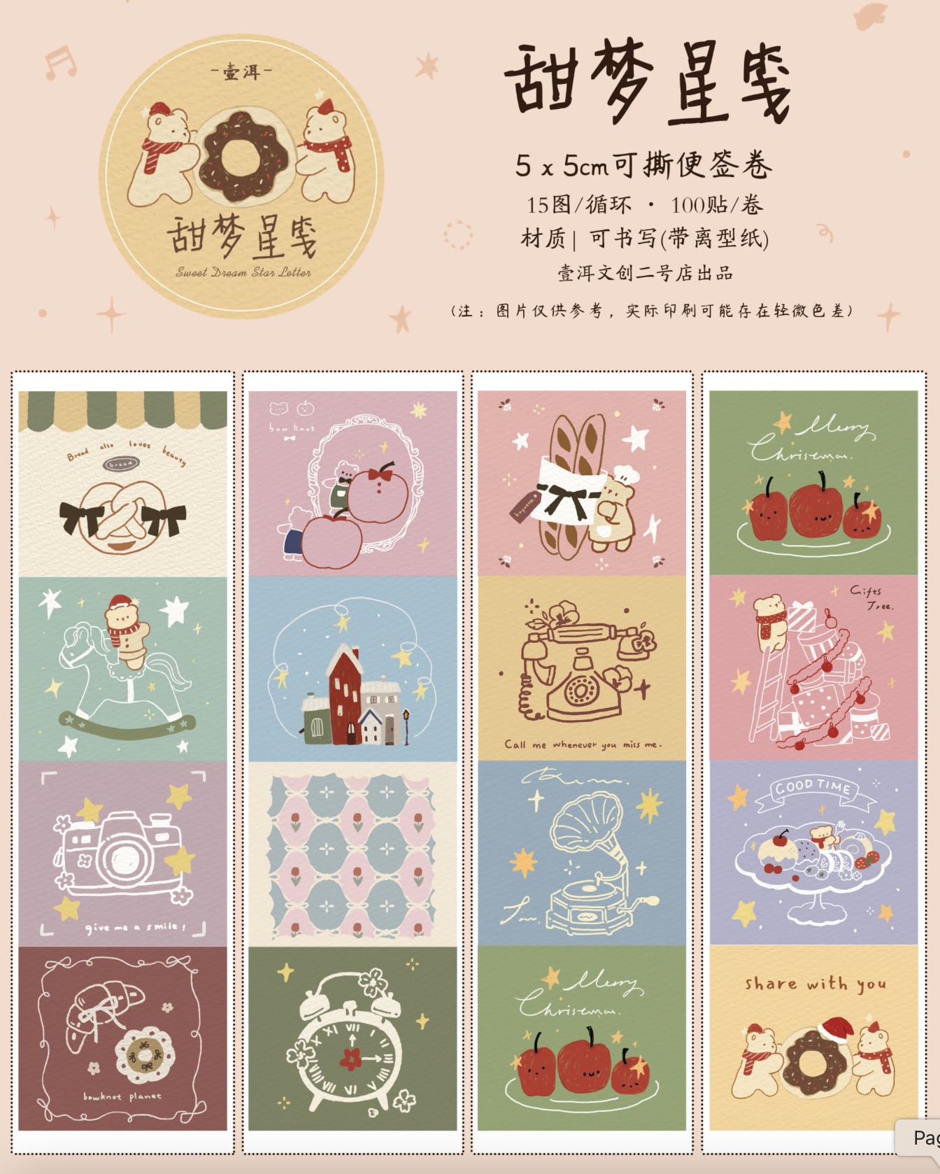 新作☆ EM138|yier 壹洱文創2号店【甜梦星笺】書けるロールシール