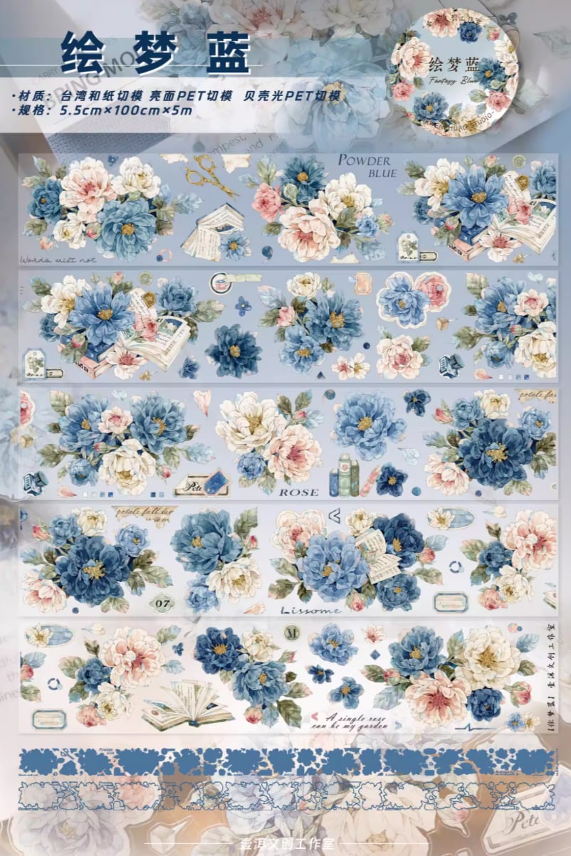 新作☆ EM140|yier 壹洱文創【绘梦-蓝】型抜き PETテープ