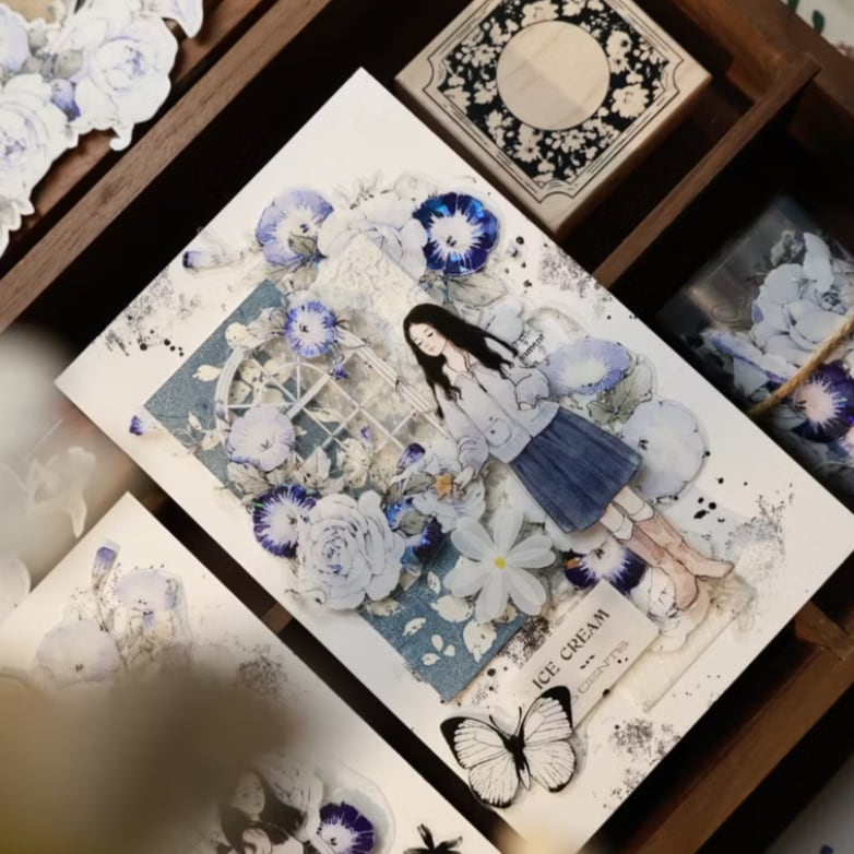 新作☆ EM148|yier 壹洱文創【推窗见花-蓝】型抜き PETテープ