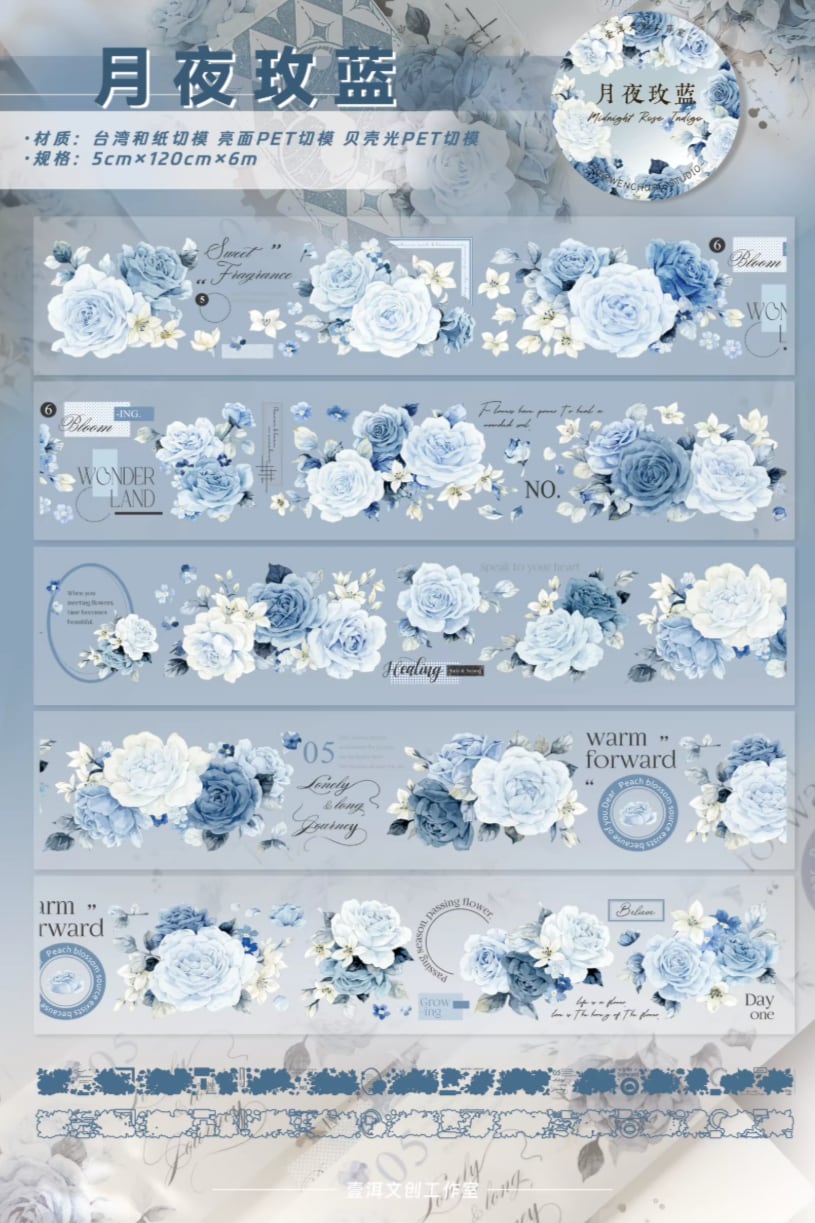 新作☆ EM155|yier 壹洱文創【月夜玫蓝】型抜き PETテープ