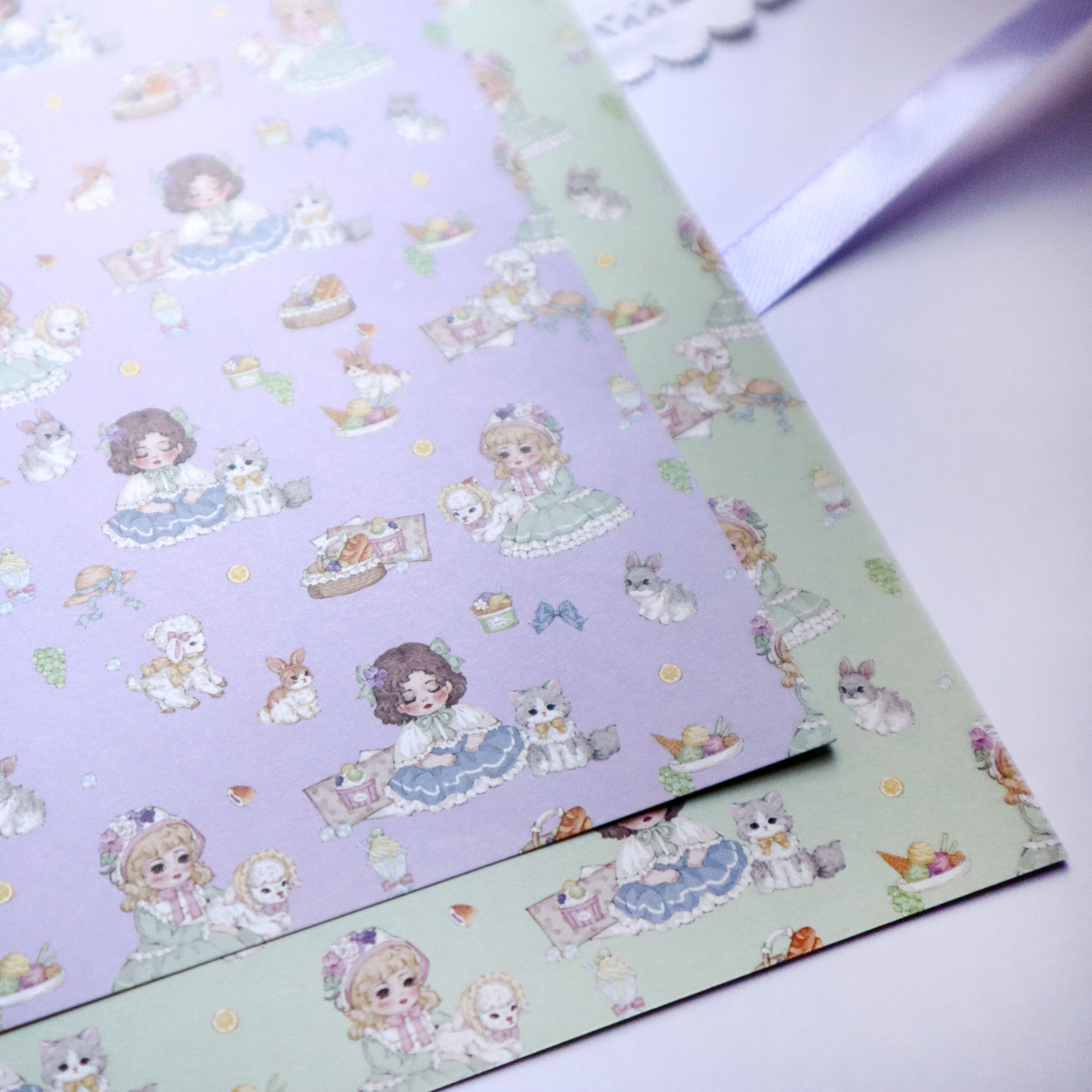 予約☆CHO125 Cherish365【Paper Doll's Picnic Paradise - pattern violet & minty】デザインペーパー / ラッピングペーパー 10枚 | cherish365_zakka