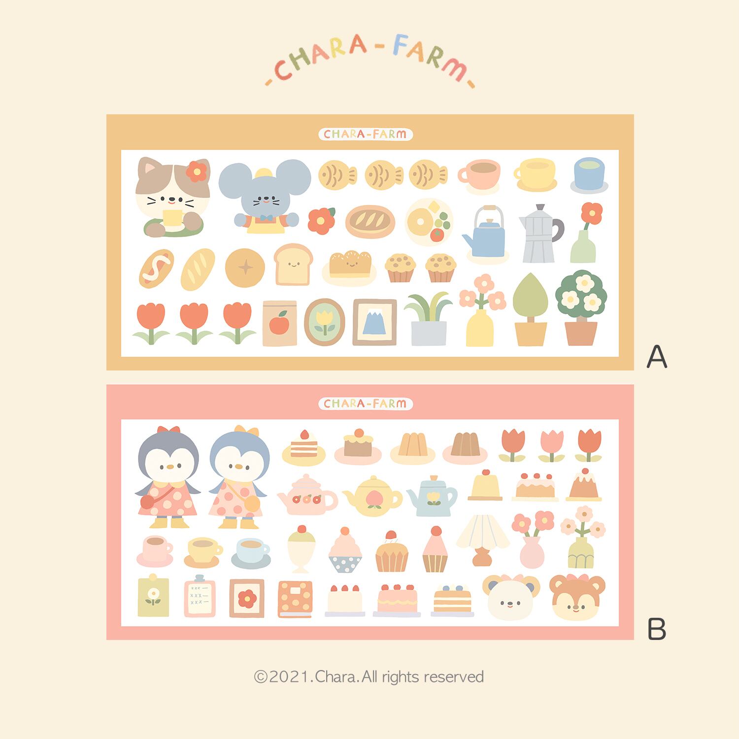 再販☆CA42 Chara farm series【猫パン屋】/ 【ペンギンケーキ屋】シートステッカー 2種 | cherish365_zakka