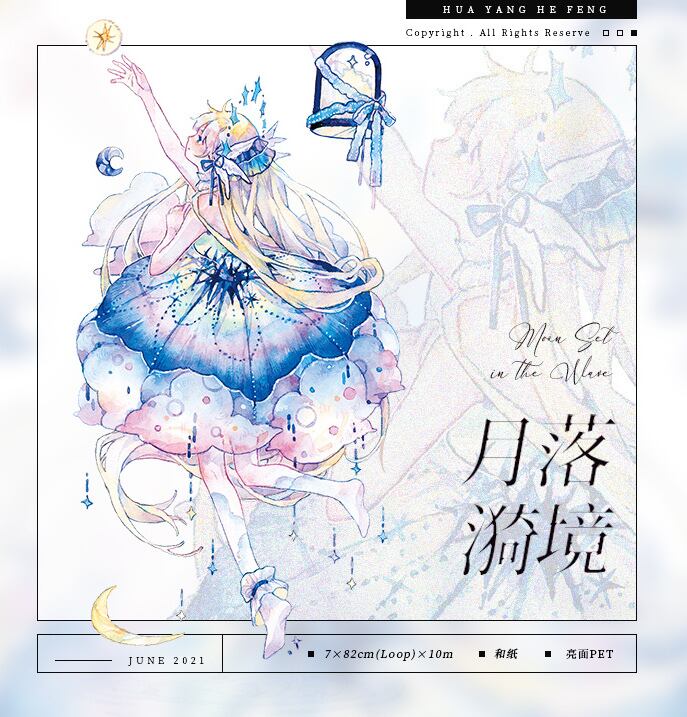 再販☆HY23B 花漾和風【月落漪境】70mm 白墨 剥離紙 光沢PETテープ | cherish365_zakka