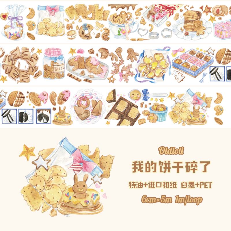 OL240B Oldloli【我的饼干碎了】幅広6cm 白墨 剝離紙 光沢 PETテープ | cherish365_zakka