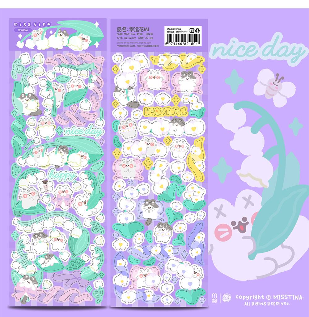 MS62 MISSTINA【幸运花mi】ラメ 防水 無辺 シール / シートステッカー 2枚