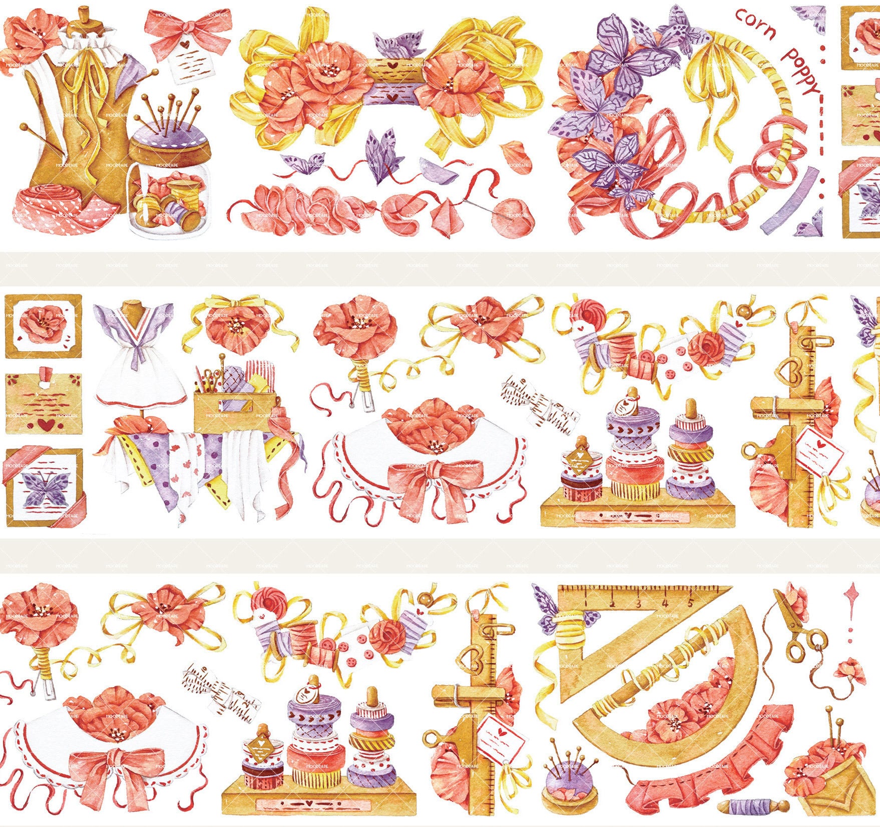 MOT253 moodtape【罂粟织物】PET テープ 幅広63mm 特殊インク 剥離紙 | cherish365_zakka