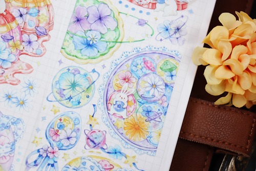 再販☆BOB54 BoBo魚手帳工作室【花季布丁】水晶 白墨 剥離紙 幅広60mm 光沢PET テープ | cherish365_zakka