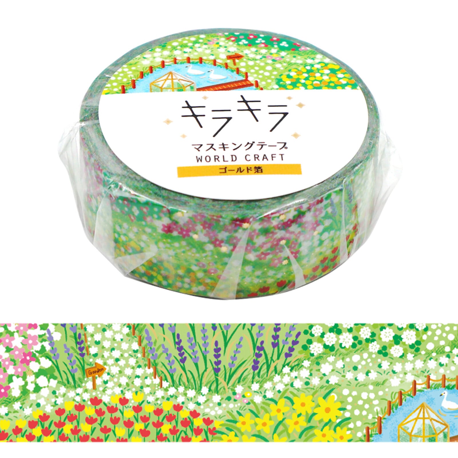 ワールドクラフト【キラキラマスキングテープ15mm Flower garden】ホワイトデー 雑貨 手帳 卒業 文具 2022新作 | cherish365_zakka