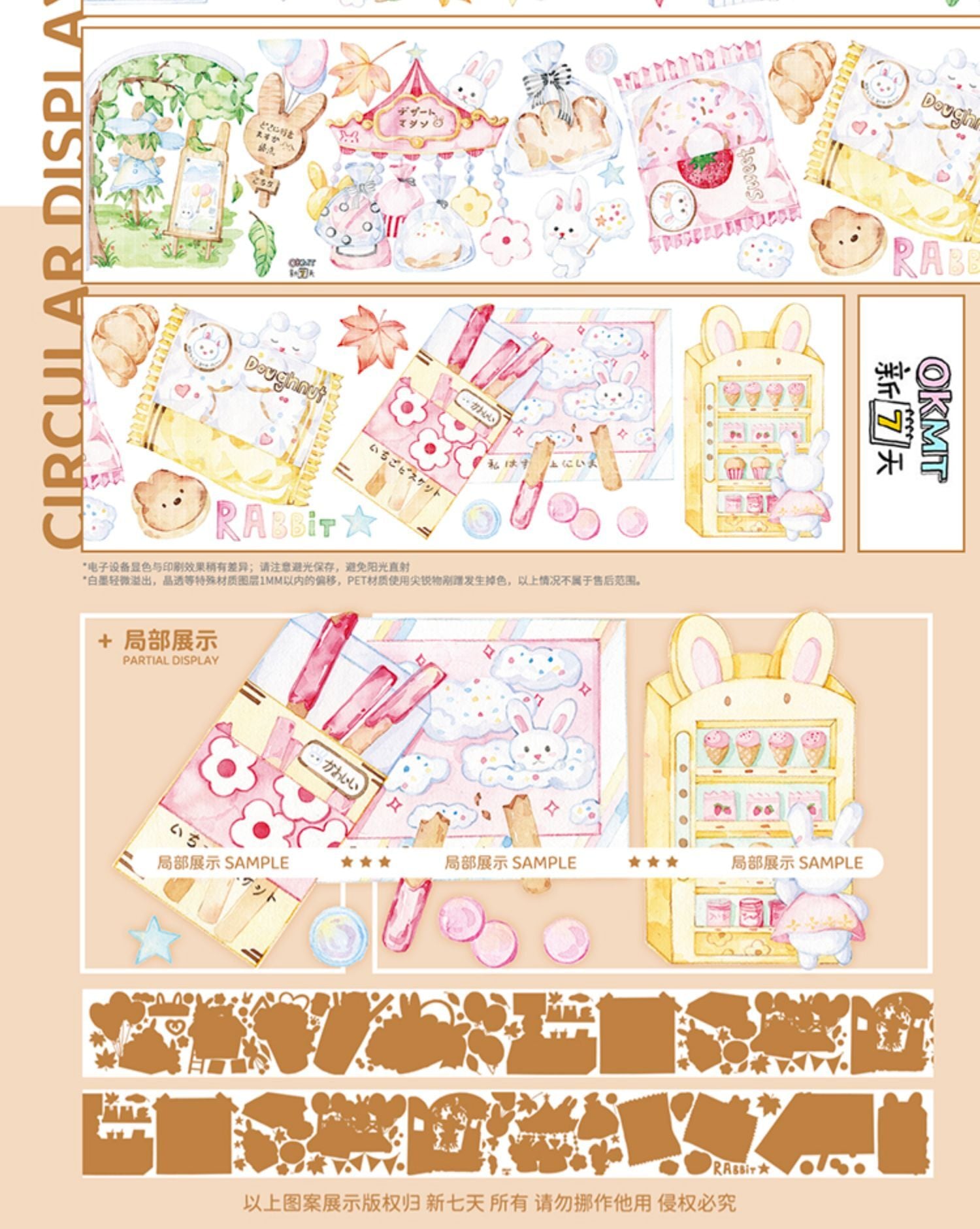 再販☆SND236 新七天【兔兔市集】(7cmx5m) 幅広 剥離紙付 白墨 PETテープ