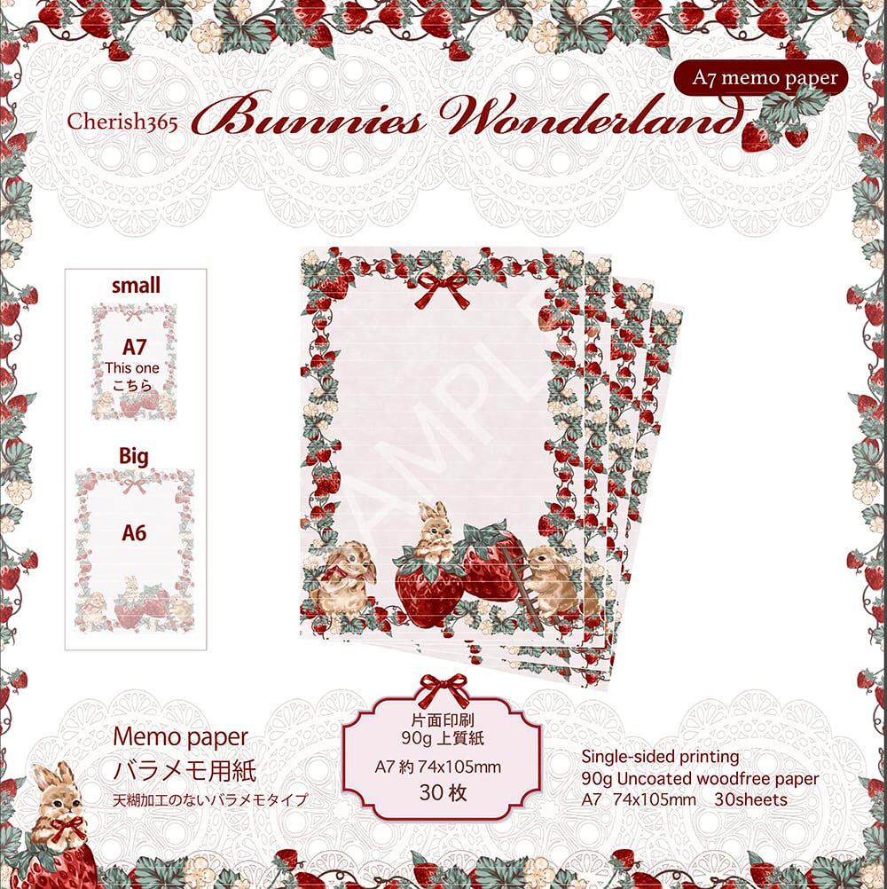 予約☆CHO10A Cherish365【Bunnies Wonderland】A7サイズ バラ メモ用紙 30枚