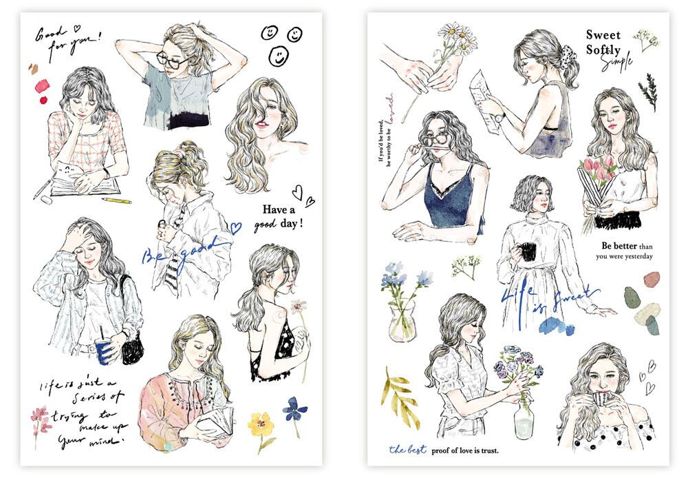 再販☆PI9 pion【素描女孩 Sketch Girl】 白墨 防水 転写 シートシール 2枚 | cherish365_zakka