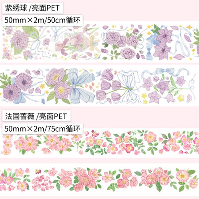 FT19 Five Treasure 五宝文創【字绣球 & 法国蔷薇】剥離紙付 PET テープ 全2種セット | cherish365_zakka