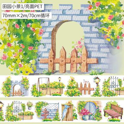FT33 Five Treasure 五宝文創【田园小景1】PET テープ 幅広7cm 特殊インク 剥離紙付