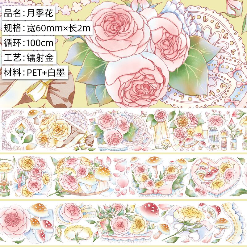 FT44 Five Treasure 五宝文創【月季花】オーロラ金 PET テープ 幅広6cm 特殊インク 剥離紙付 | cherish365_zakka