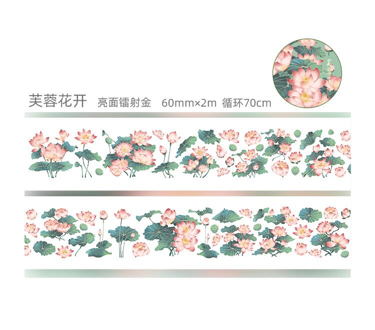 FT51 Five Treasure 五宝文創【芙蓉花开】 PET テープ オーロラ金加工 剥離紙付 6cmx2m | cherish365_zakka