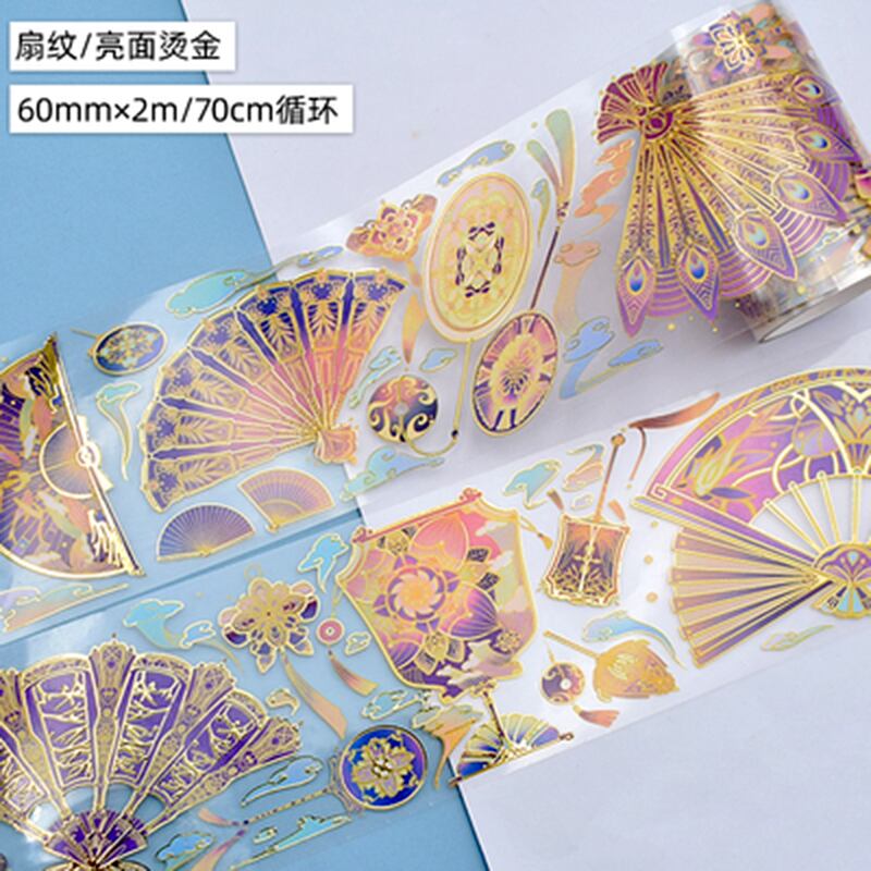 新作☆FT54 Five Treasure 五宝文創【扇纹】金オーロラ加工 剥離紙付 PET テープ 6cmx2m | cherish365_zakka