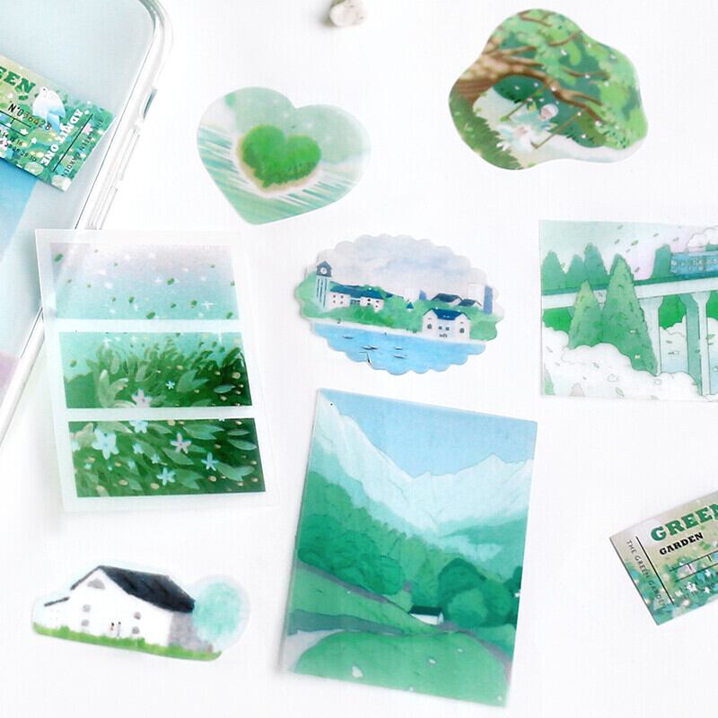 2022.7月 トレーシングペーパーシール 「幻の旅・緑野 」15designs x 3 45枚入り | cherish365_zakka