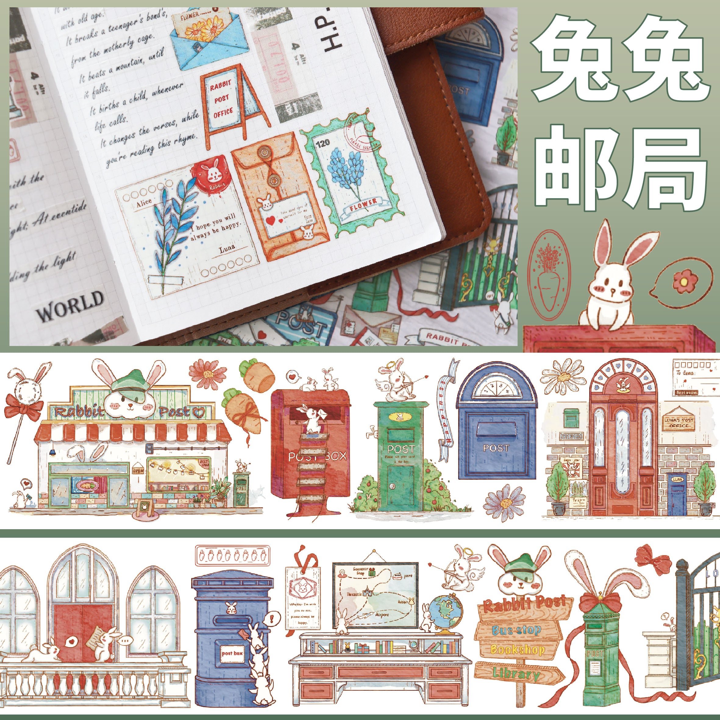 再販☆BOB70 BoBo魚手帳工作室【兔兔邮局】PET テープ 水晶インク 白墨 剥離紙 光沢 | cherish365_zakka