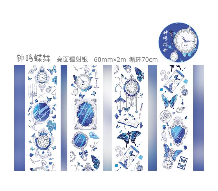 FT65 Five Treasure 五宝文創【钟鸣蝶舞】PET テープ 幅広6cm 銀オーロラ 剥離紙付 | cherish365_zakka
