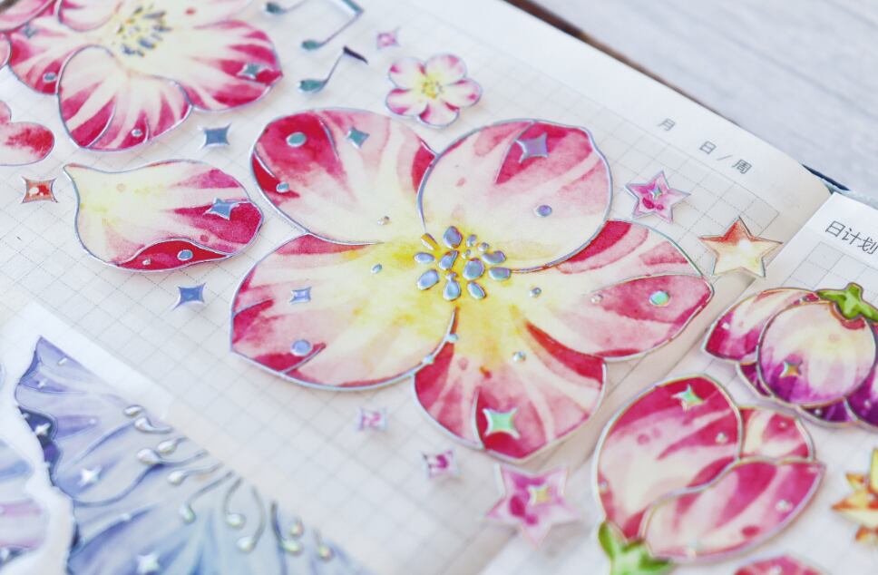 新入荷☆BOB80B BoBo魚手帳工作室【花園秘境】立体オーロラ銀 白墨 剥離紙 光沢PET テープ | cherish365_zakka