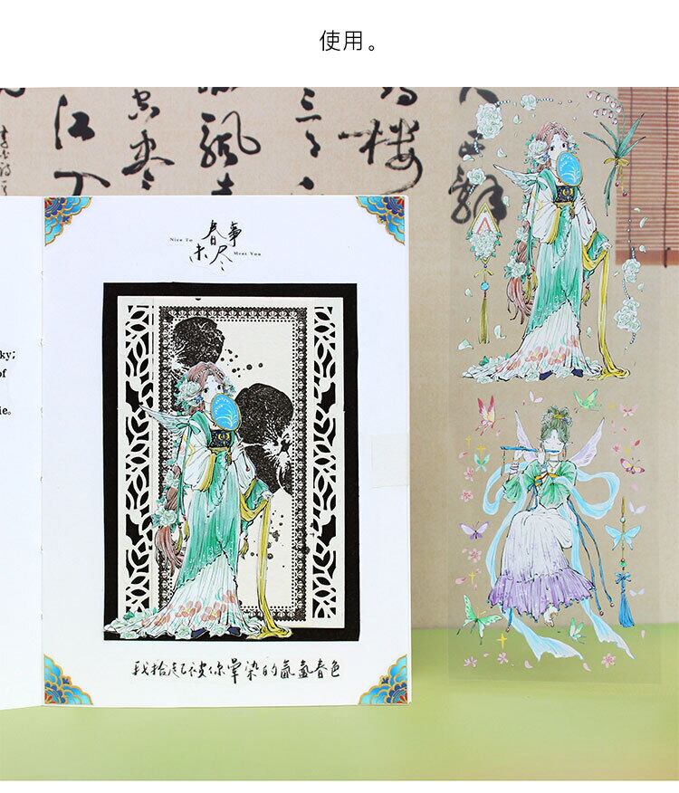MOT325 moodtape【明月玲珑玉人妆】PET テープ 特殊+白インク 剥離紙 | cherish365_zakka