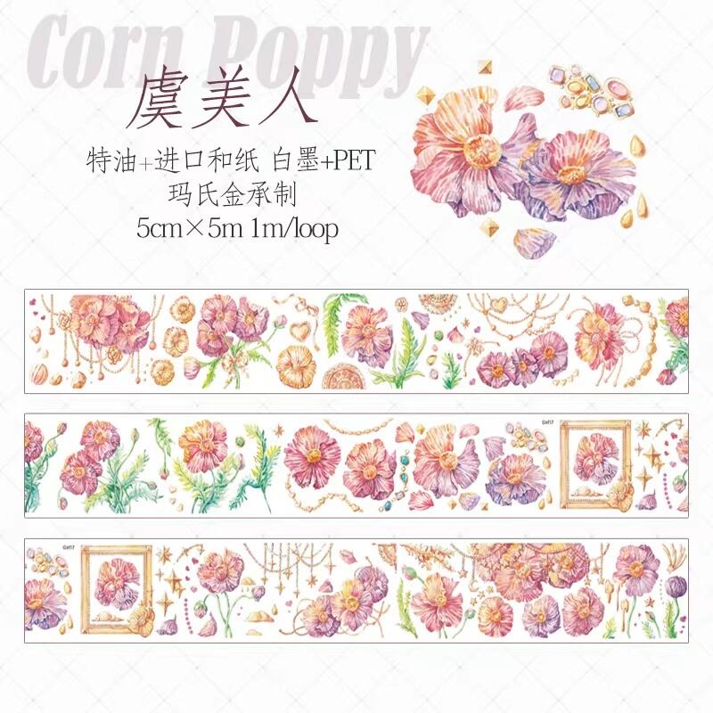 再販☆OL334B Girl17 (Oldloli)【Corn Poppy 虞美人】PETテープ 5cmx5m 剥離紙付き 白墨 | cherish365_zakka