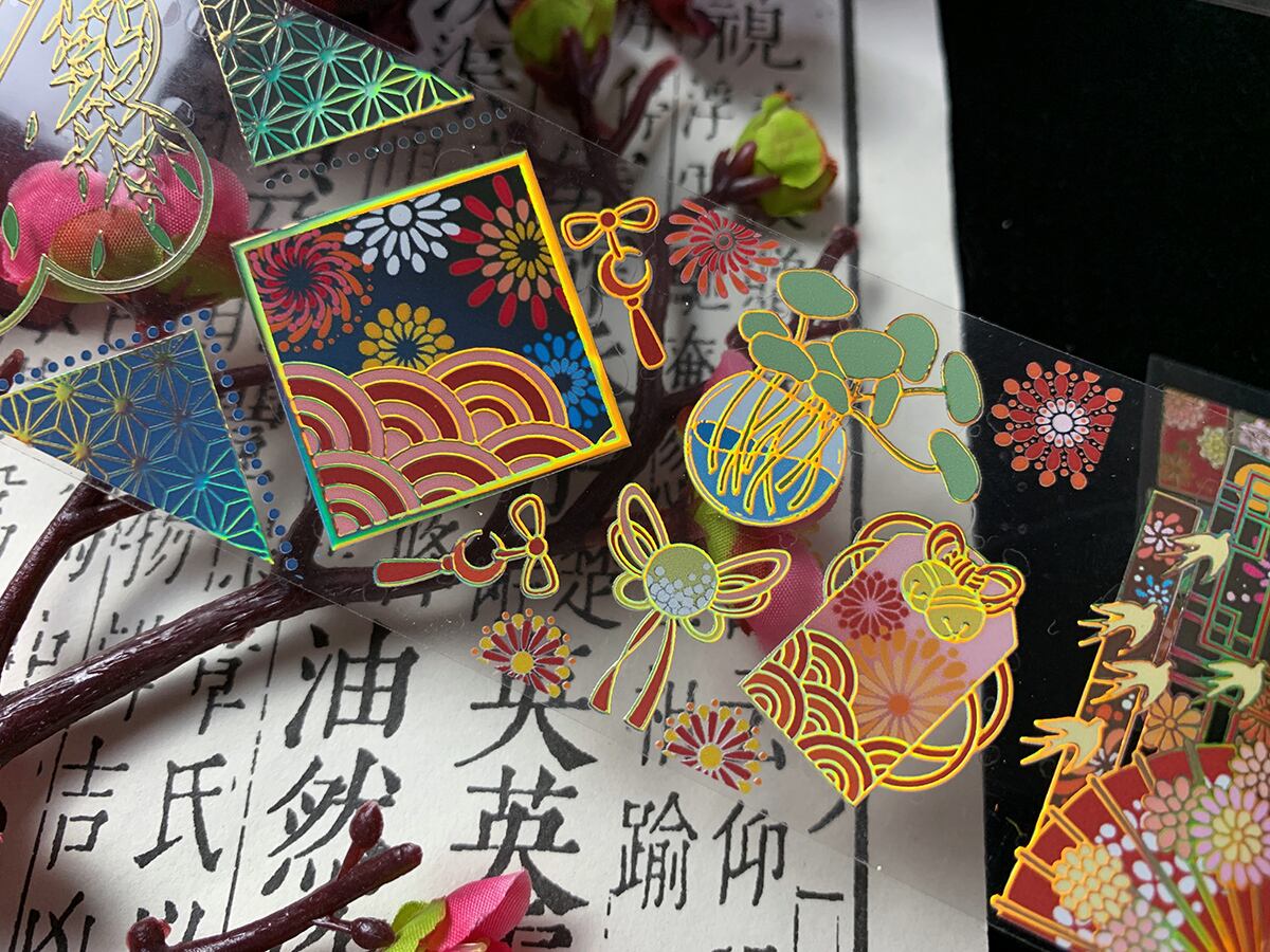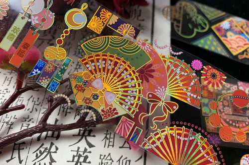 SND332 新七天 OKMT【纸扇】(5cmX5m) PETテープ オーロラ金 剥離紙付 | cherish365_zakka