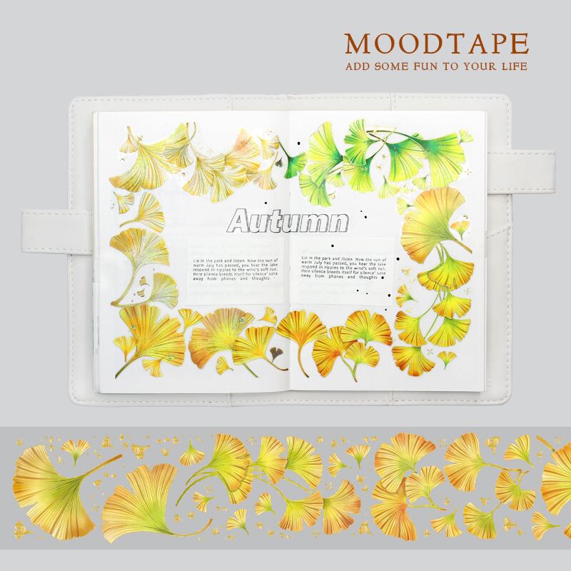 MOT354 moodtape【银杏婉约】立体オーロラ金加工 PETテープ 白インク 剥離紙