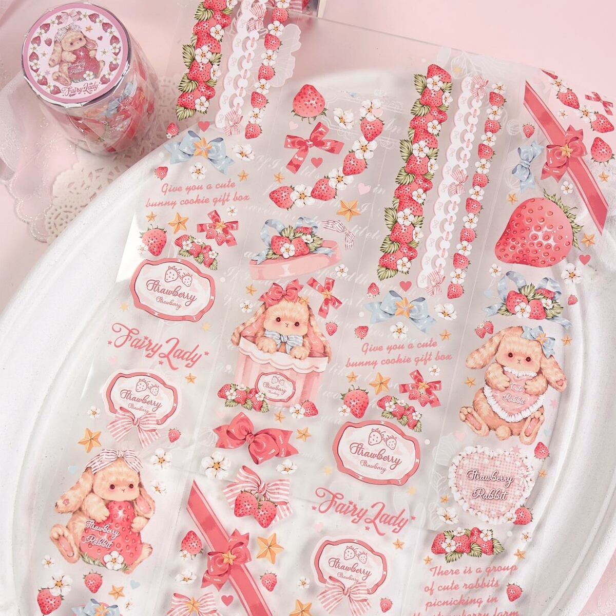 FL491 Fairylady【兔兔的春色草莓园 Bunny's Strawberry Farm in Spring】PET テープ 剥離紙 白墨 | cherish365_zakka