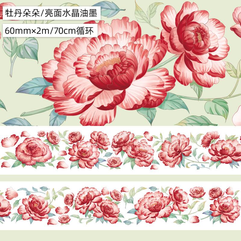 新作☆FT112 Five Treasure 五宝文創【牡丹朵朵】水晶加工 PET テープ 剥離紙付 6cmx2m | cherish365_zakka