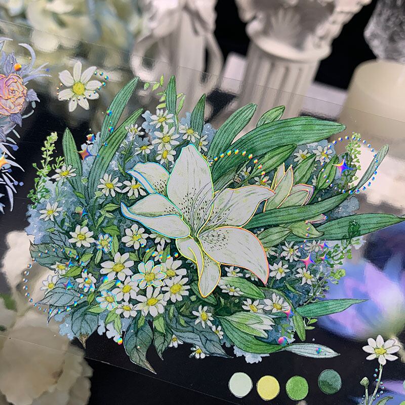 SND366 新七天【纷纷花隐】オーロラ銀加工 PETテープ 7cmX5m 白インク 特殊インク | cherish365_zakka